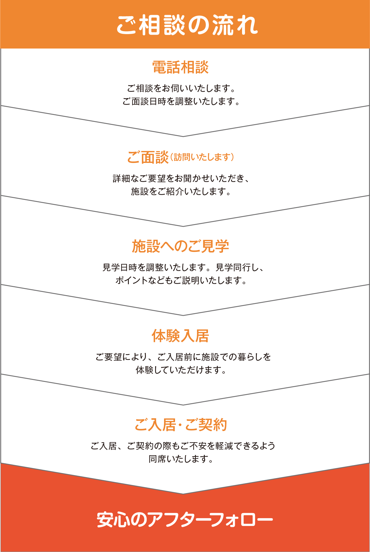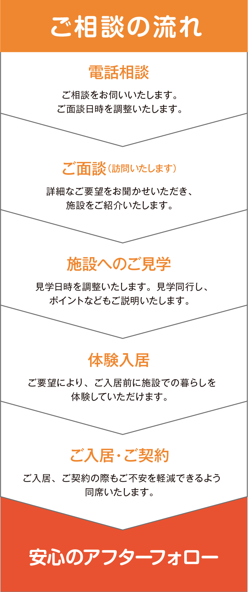 ご面談にお伺いいたします。また不安が和らげるよう、見学同行などもご対応しております。
